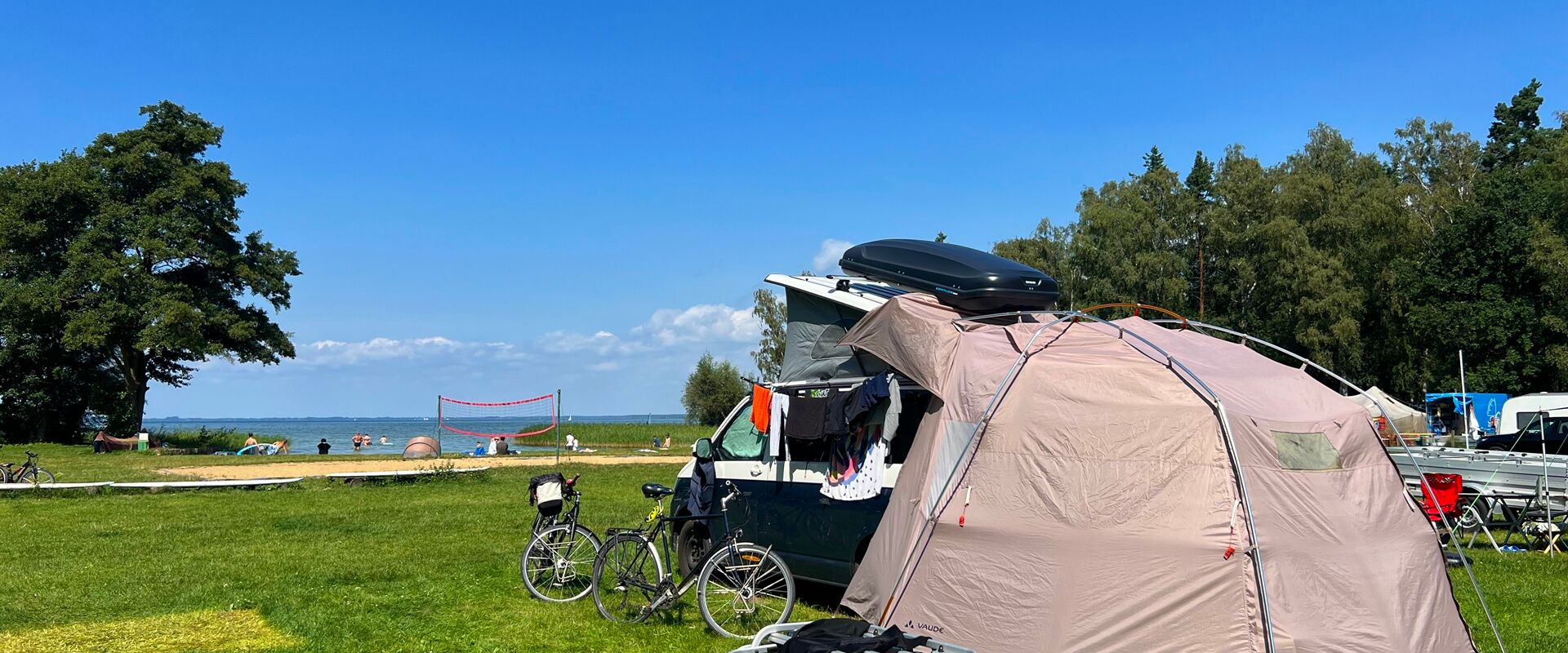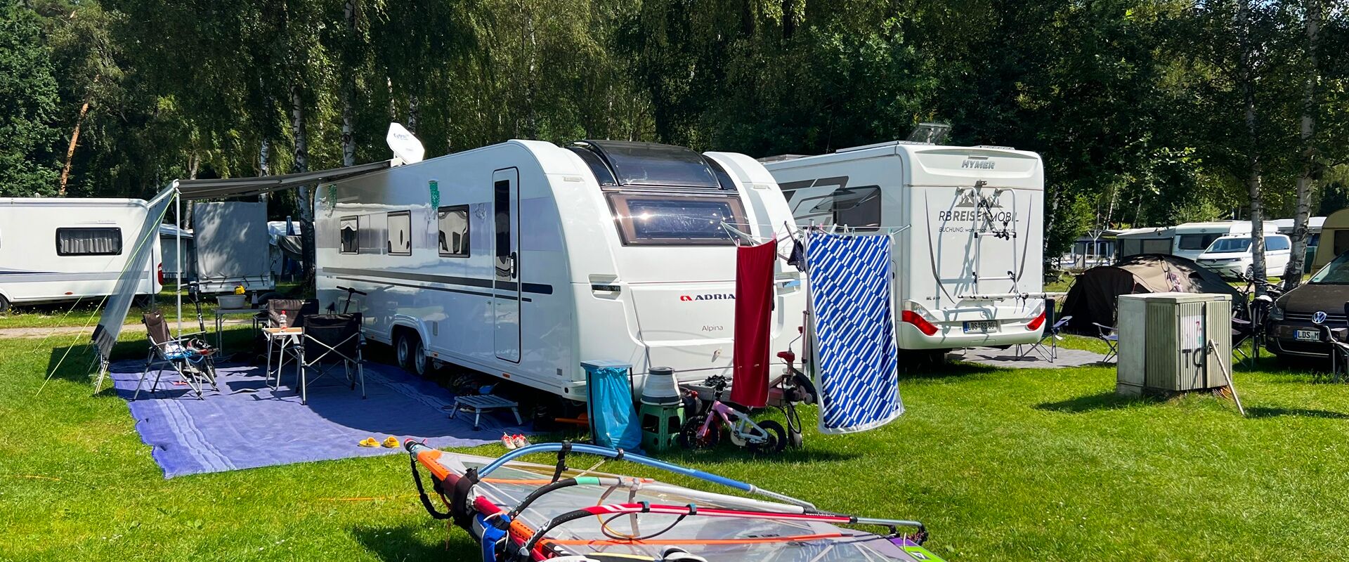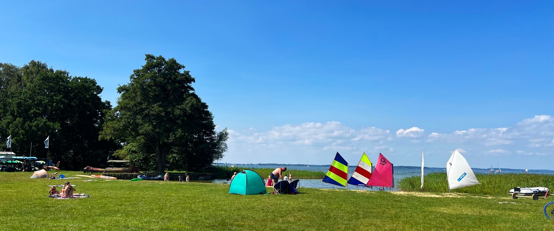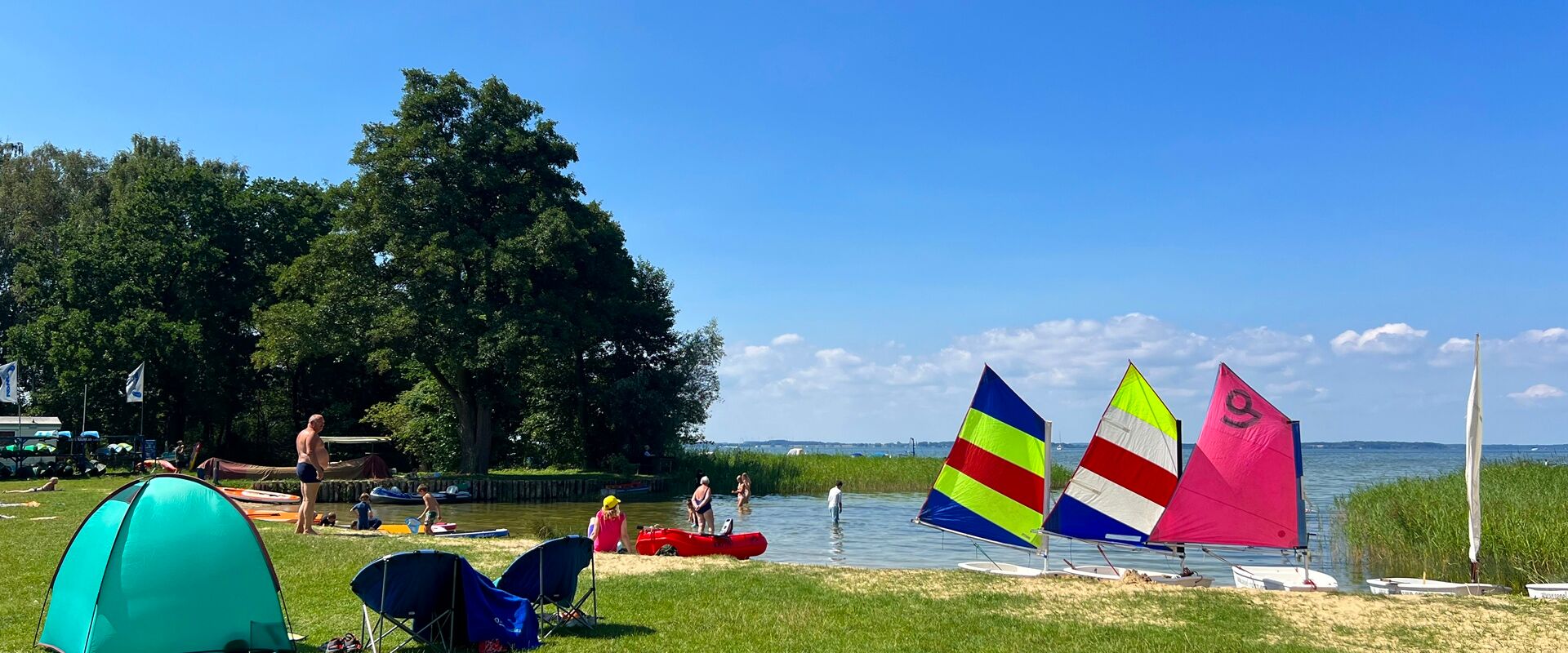 Hier findet ihr Parzellen in Wassernähe, freie Stellplätze für Zelte, Wohnwagen oder Caravans und die allerschönsten Sonnenuntergänge am Südostufer der Müritz. Wenn’s euch mal packt, habt ihr sogar die Möglichkeit Profisurfer zu werden – Mirko wird’s euch zeigen. 😊